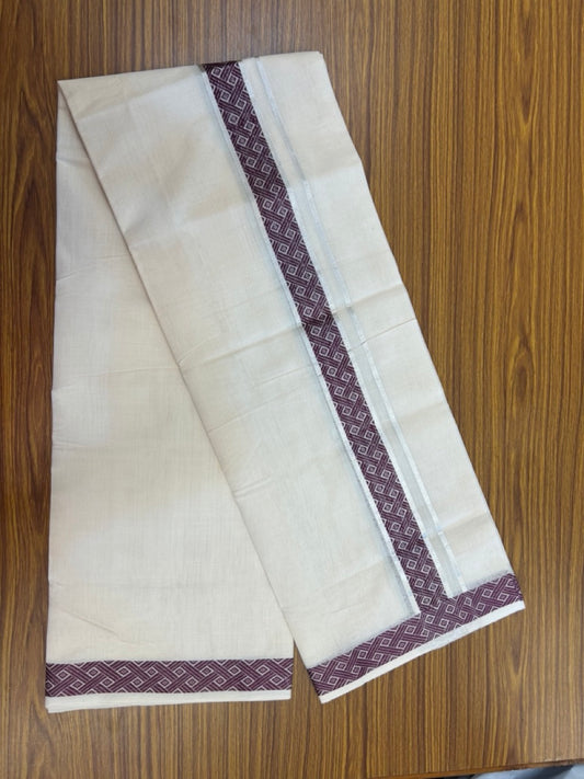 20% Discount ! Kaitharikada Balaramapuram 100% Cotton Pure White Double Mundu/Dothi - 60s - 1.5 inch Beige Brown & Wine Purple Shaded Kara 3.80 mtr (8 muzham) - 58 KK5299 THI