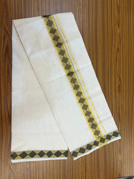 25% Discount ! Kaitharikada Handloom Unakkupaav Balaramapuram - 100% Pure Cotton Off White- (Unbleached) Double Mundu/Dhoti - 100x80 - 1.75 inch Gold Kasav & Black Jacquard Design Kara 4 mtr (8.5 Muzham) - 3 KK5301 ABH