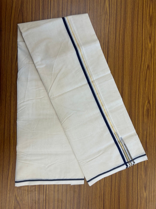 25% Discount ! Kaitharikada Handloom Unakkupaav Balaramapuram - 100% Pure Cotton Off White - (Unbleached) Double Mundu/Dhoti - 100x80 - 1.75 inch Gold Kasav & Blue Jacquard Design Kara 4 mtr (8.5 Muzham) - 4 KK5301 ABH