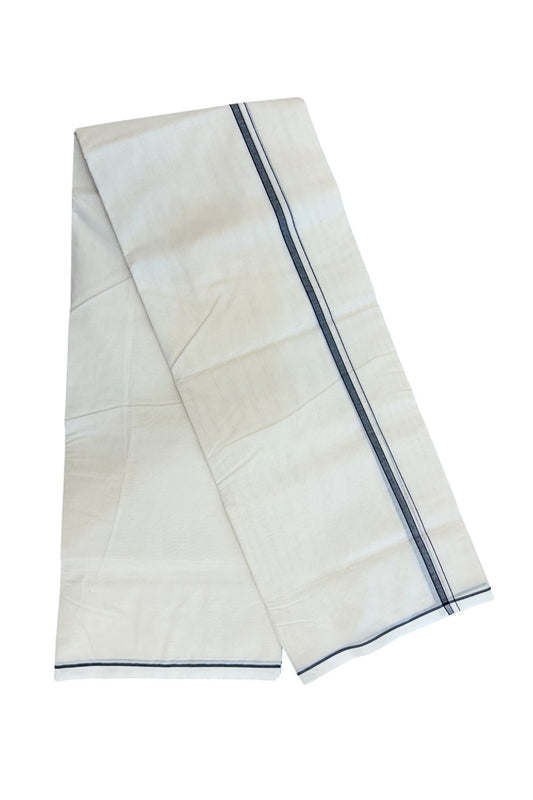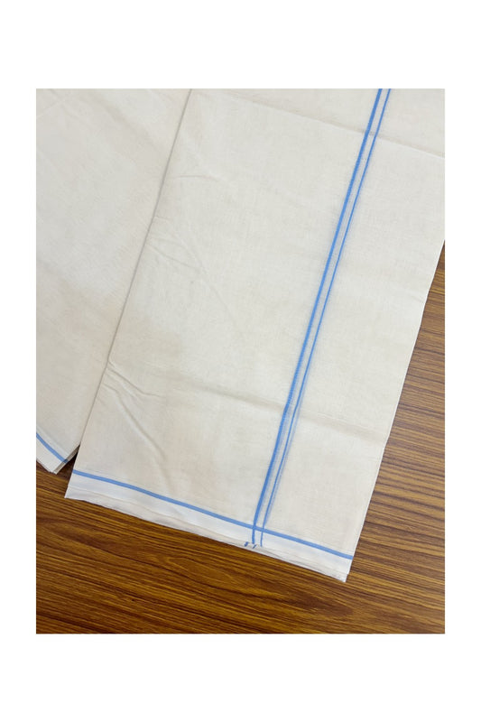 20% Discount! KaithariKada Balaramapuram 100% Cotton Double Off white - (Unbleached) - Mundu/Dhoti-100x100 - 0.3 cm Light Blue Thin Kara - 13KK5228 ASH