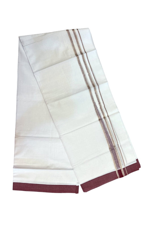 25% Discount ! KaithariKada Handloom Unakkupaav Balaramapuram - 100% Pure Cotton Off White - (Unbleached) Double Mundu/Dhoti -100x80 - 1.75 inch Gold Kasav & Copper Jacquard Design Kara 4 mtr (8.5 Muzham) - 12KK5231 ABH