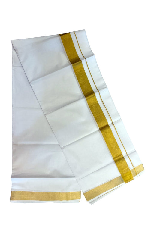 20% Discount!! KaithariKada Balaramapuram 100% Cotton Double Pure White Mundu/Dhoti - 100x100 - 1.25 inch Gold Kasav Kara 4 mtr (8.5 muzham) - 16KK5221 GAN