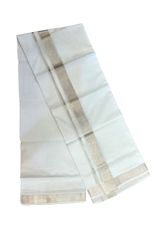 20% Discount!! KaithariKada Balaramapuram 100% Cotton Double Pure White Mundu/Dhoti - 100x100 - 1.25 inch Silver Kasav Kara 4 mtr (8.5 muzham) - 17KK5221 GAN