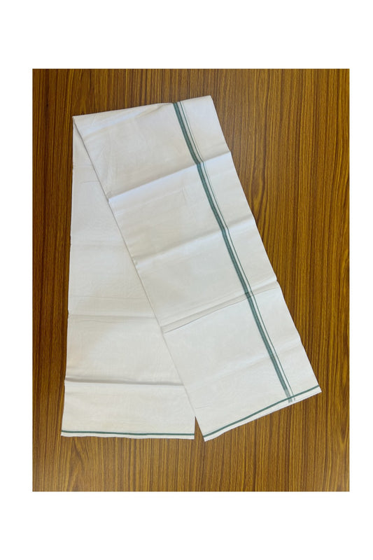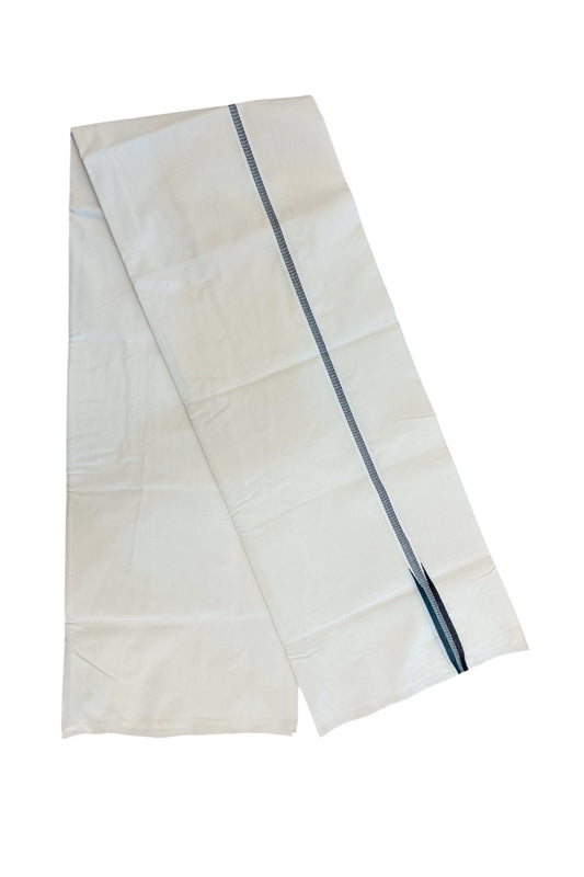 24% Discount !! KaithariKada Balaramapuram 100% Cotton Pure white Single Mundu/Dhoti - Twisted 60s Thread- 1 cm Teal Green & Black Striped Kara (2 meter / 4 muzham) - 23KK5241 GL