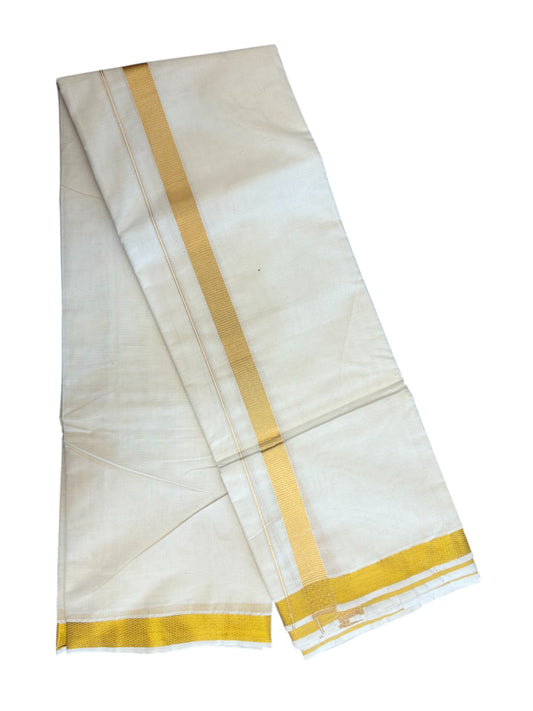 25% Discount ! KaithariKada Handloom Unakkupaav Balaramapuram - 100% Pure Cotton Off White- (Unbleached) Double Mundu/Dhoti - 100x80 - 1.75 inch Gold Kasav Jacquard Design Kara 4 mtr (8.5 Muzham) - 13KK5231 ABH