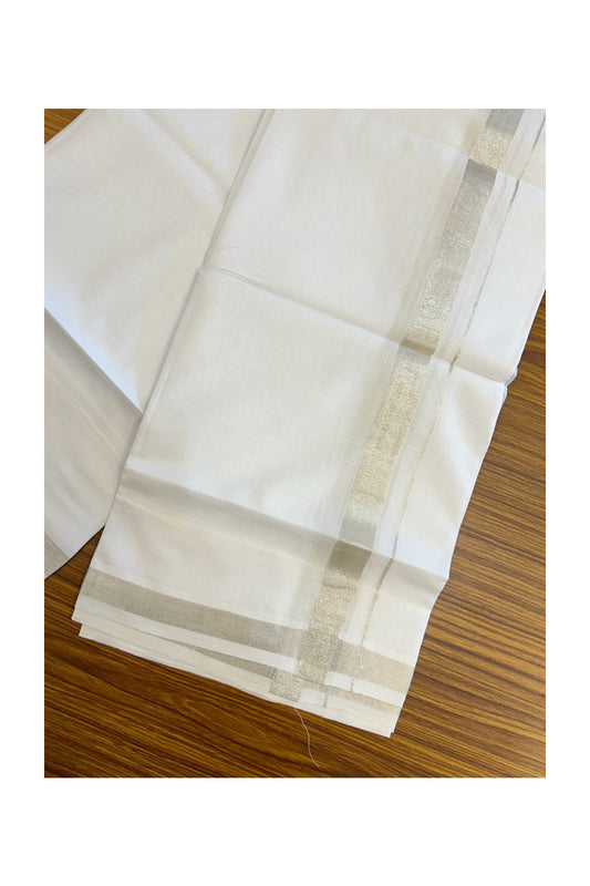 20% Discount! KaithariKada Balaramapuram 100% Cotton Double Pure white Mundu/Dhoti- 100x80 - 2 cm Silver Kasav Kara - 3.94mtr ( 8 muzham) - 35KK5227 PMC