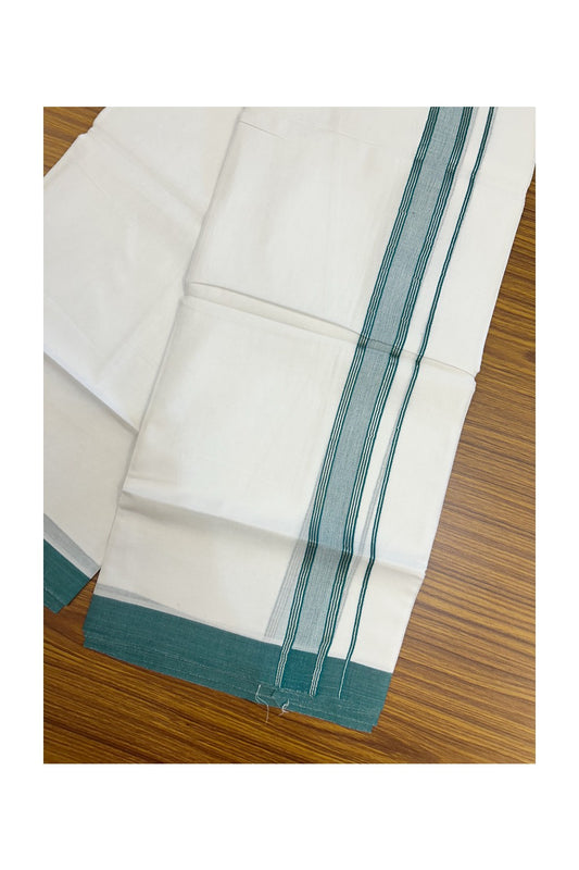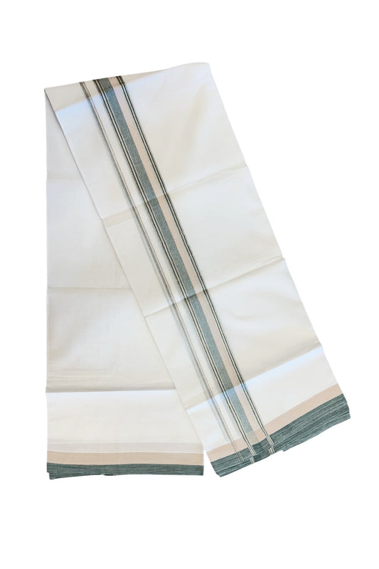 20% Discount! KaithariKada Balaramapuram 100% Cotton Double Pure white Mundu/Dhoti- 100x80 - 1.5 inch Silver Kasav Green & Cream Shaded Striped Kara - 3.84mtr ( 8 muzham) - 36KK5227 PMC