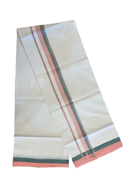 20% Discount! KaithariKada Balaramapuram 100% Cotton Double Pure white Mundu/Dhoti- 100x80 - 1.25 inch Silver Kasav Green & Rose Pink Shaded Striped Kara - 3.84mtr ( 8 muzham) - 37KK5227 PMC