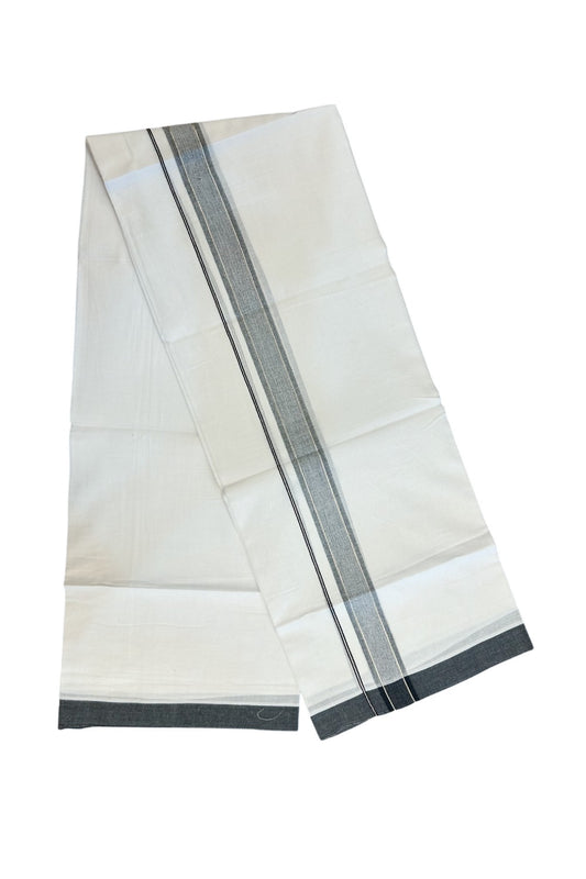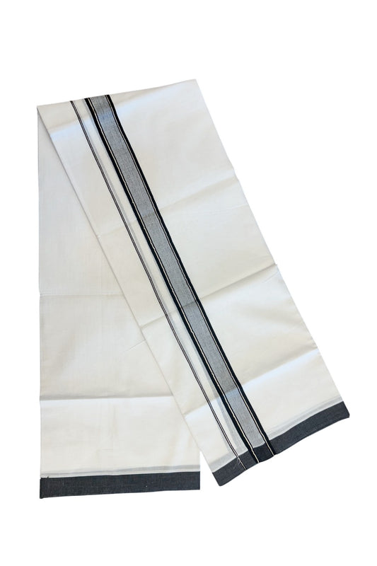 20% Discount! KaithariKada Balaramapuram 100% Cotton Double Pure white Mundu/Dhoti- 60s - 1.5 inch Silver Kasav & Black Shaded Striped Kara - 3.88mtr ( 8 muzham) - 46KK5227 PMC