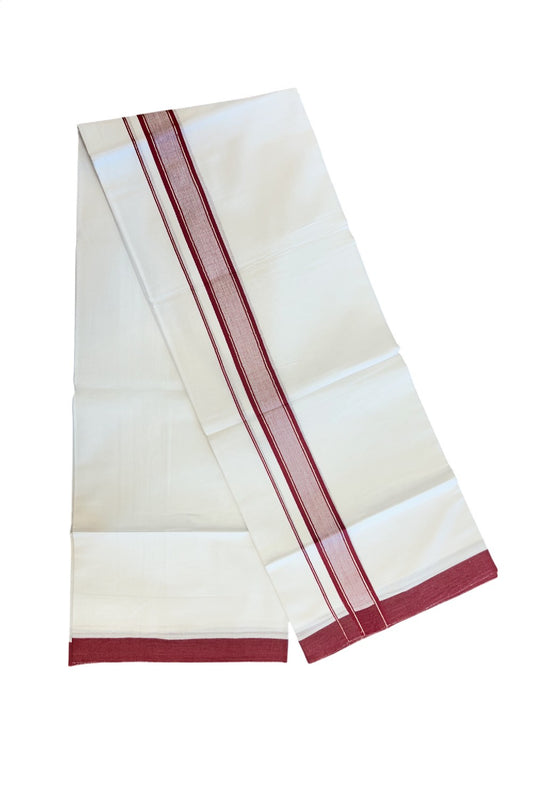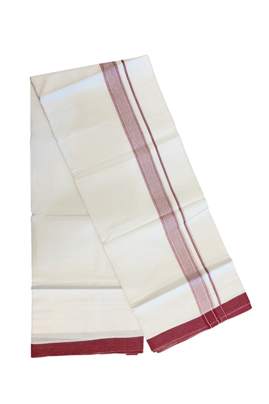 16% Discount! KaithariKada Balaramapuram 100% Mercerised Cotton Double Ultra Pure White Mundu/Dhoti - 100x100 - 1 inch Maroon & Kasav Stripes Kara - 3KK5221 GAN