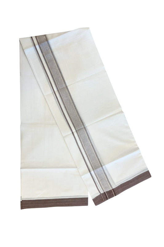 17% Discount! KaithariKada Balaramapuram 100% Cotton Double Pure White Mundu/Dhoti - 100x100 - 1.5 inch Brown Silver Kasav & Gold Kasav Stripes Kara - 6KK5221 GAN