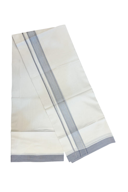 20% DIiscount! KaithariKada Balaramapuram 100% Cotton Double Pure white Mundu/Dhoti- 100X80 - 1.25 inch Silver Kasav & Ash Grey Striped Kara - 3.84mtr ( 8 muzham) - 60KK5227 PMC