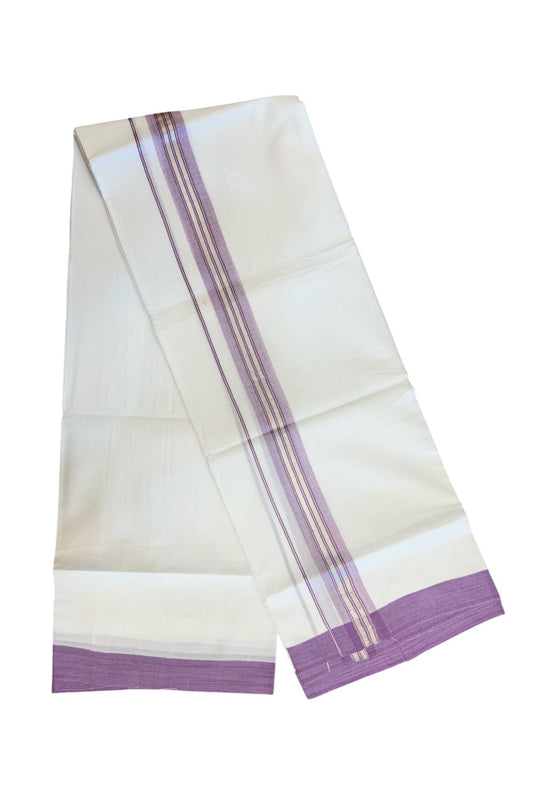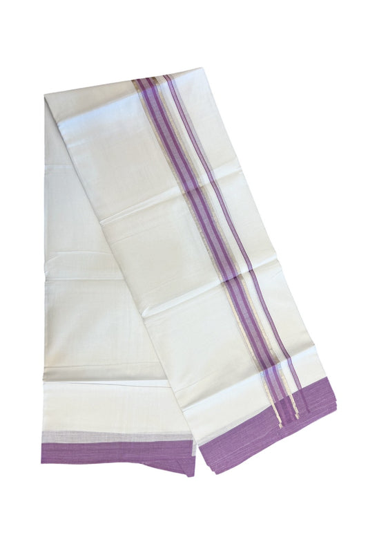 20% Discount! KaithariKada Balaramapuram 100% Cotton Double Pure white Mundu/Dhoti- 60s - 1.25 inch Silver Kasav & Light Violet Striped Kara - 3.78mtr ( 8 muzham) - 58KK5227 PMC