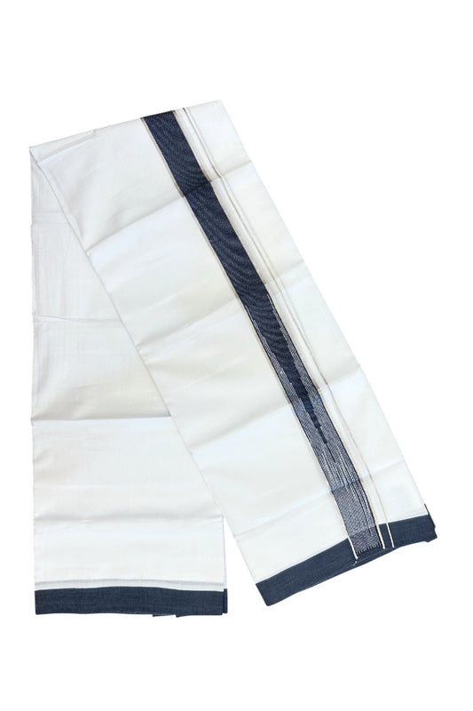 20% Discount! KaithariKada Balaramapuram 100% Cotton Off White Double (Unbleached) Mundu/Dhoti-100x80 1.75 inch Blue & Black shaded designer kara 4 mtr (8.5 muzham) - 118KK5220 THI