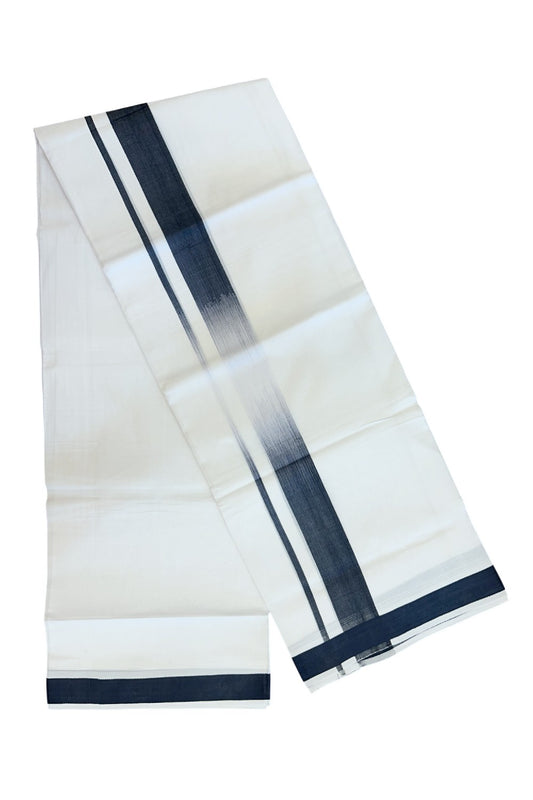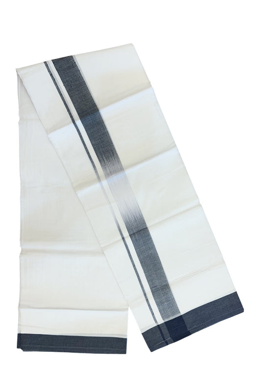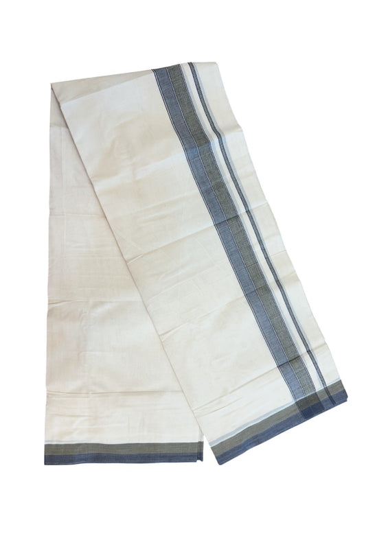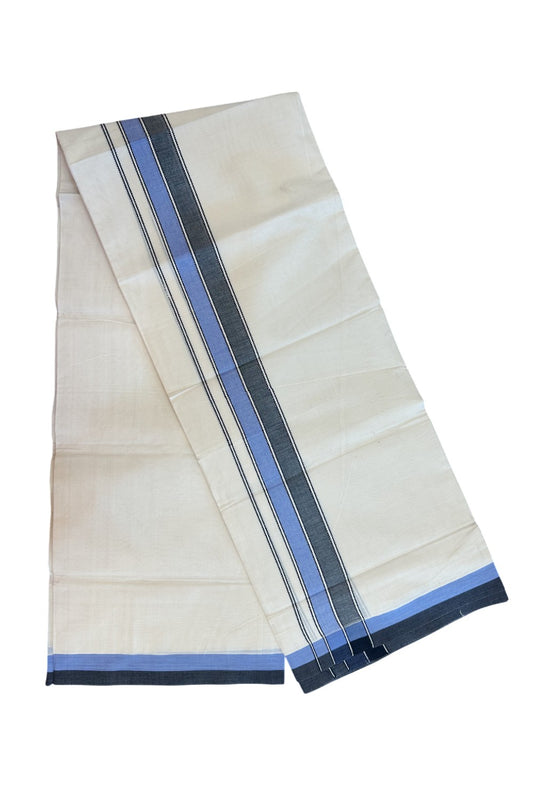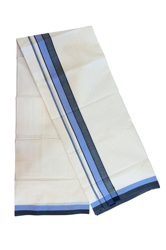 20% Discount! KaithariKada Balaramapuram 100% Cotton Off White Double (Unbleached) Mundu/Dhoti-100x80 - 2 inch Blue & Black shaded designer kara 4 mtr (8.5 muzham) - 119KK5220 THI