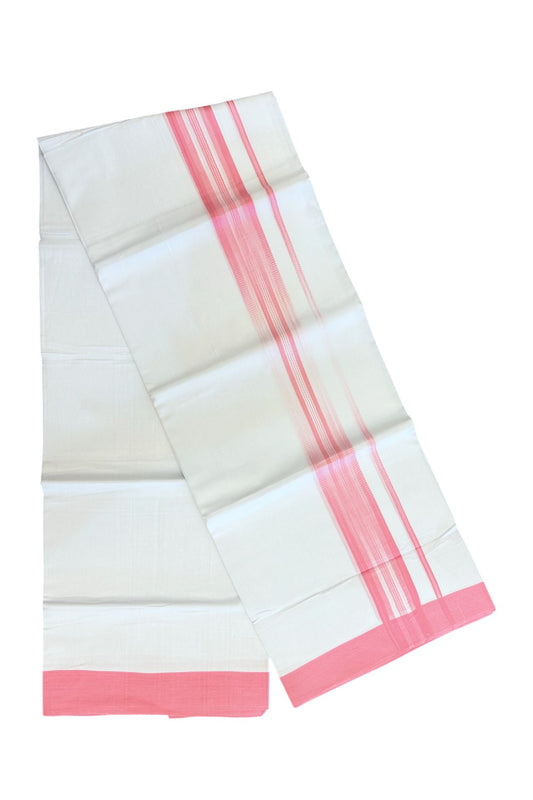 20% Discount ! Kaitharikada Balaramapuram 100% Cotton Pure White Double Rainbow Mundu/Dothi - 100x80 - 1.75 inch Pink Stripes Kara 3.80 mtr (8 muzham) - 108KK5220 THI