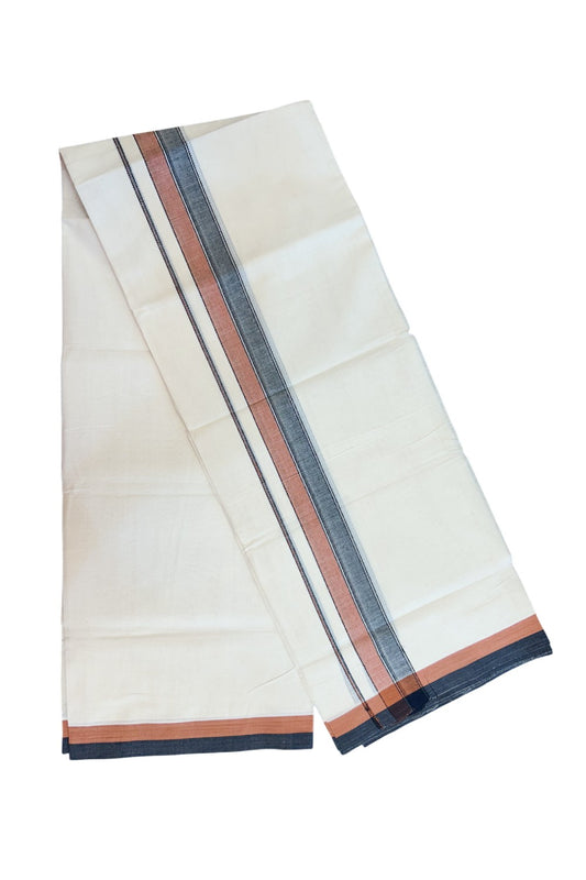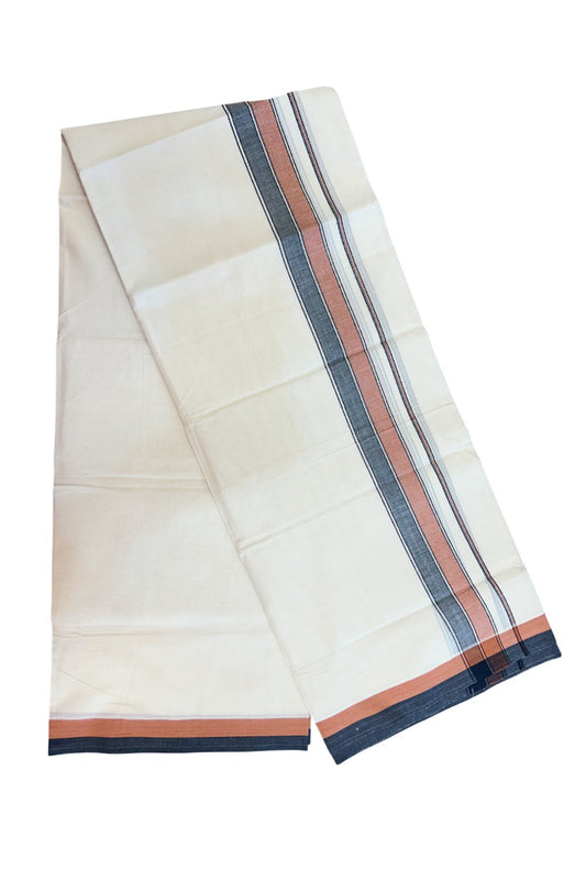 20% Discount! KaithariKada Balaramapuram 100% Cotton Off White Double (Unbleached) Mundu/Dhoti-100x80 1.75 inch Orange Brown & Black shaded designer kara 4 mtr (8.5 muzham) - 117KK5220 THI