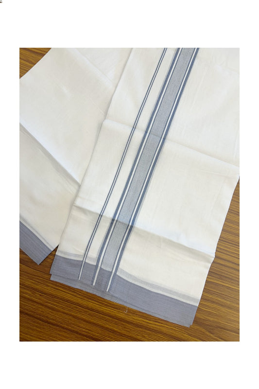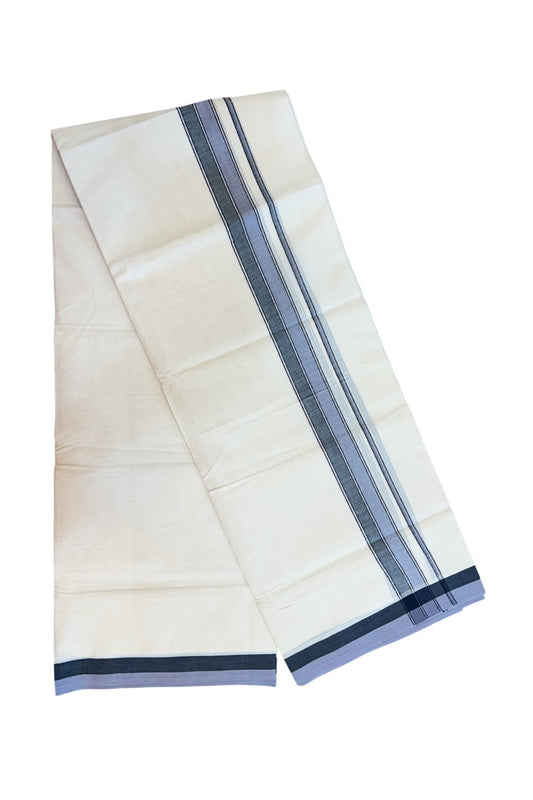 20% Discount! KaithariKada Balaramapuram 100% Cotton Off White Double (Unbleached) Mundu/Dhoti-100x80 1.75 inch Ash Lavander & Black shaded designer kara 4 mtr (8.5 muzham) - 115KK5220 THI