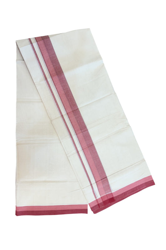 20% Discount! KaithariKada Balaramapuram 100% Cotton Off White Double (Unbleached) Mundu/Dhoti-100x80 1.75 inch Red & Georgia Peach shaded designer kara 4 mtr (8.5 muzham) - 116KK5220 THI
