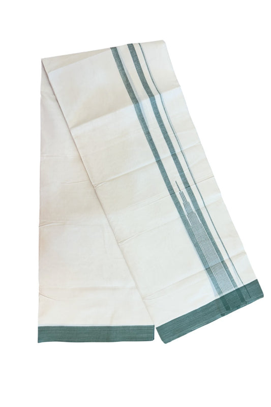 20% Discount! KaithariKada Balaramapuram 100% Cotton Off White Double (Unbleached) Mundu/Dhoti-100x80 - 2 inch Puliyilakkara Dark Green shaded Temple Chutty kara 4 mtr (8.5 muzham) - 121KK5220 THI