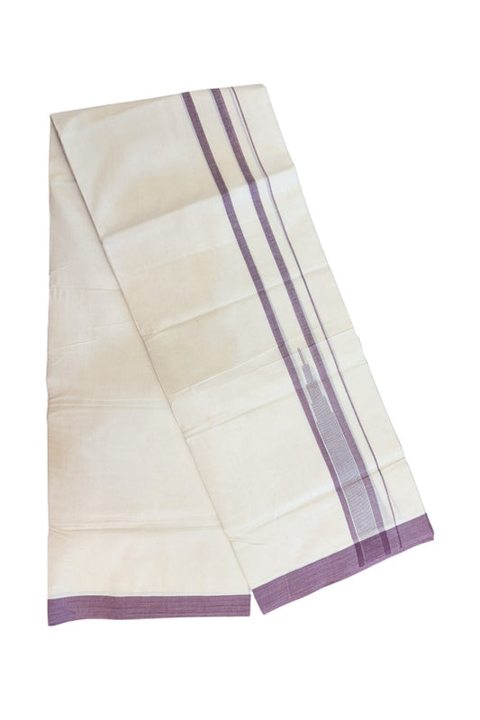 20% Discount! KaithariKada Balaramapuram 100% Cotton Off White Double (Unbleached) Mundu/Dhoti-100x80 - 1.75 inch Puliyilakkara Dusty Purple shaded Temple Chutty kara 4 mtr (8.5 muzham) - 122KK5220 THI
