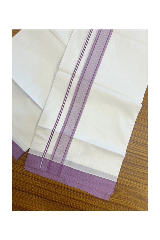 20% Discount! KaithariKada Balaramapuram 100% Cotton Double Pure white Mundu/Dhoti-( 60s ) - 1.5 inch Purple Lavender Shaded Kara - 3.86mtr ( 8 muzham) - 14KK5227 PMC
