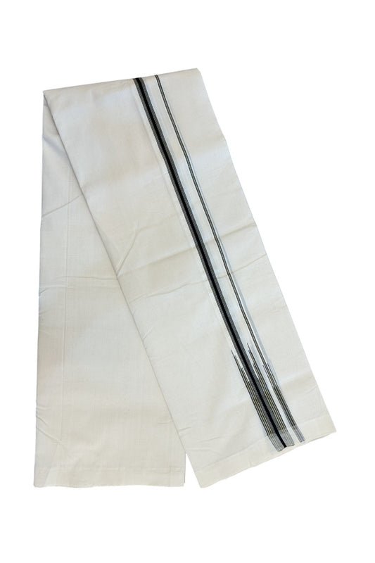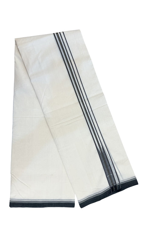 25% Discount!! KaithariKada Handloom Unakkupaav Balaramapuram - 100% Pure Cotton Off White - (Unbleached) Double Mundu/Dothi - 80X100 - 1.5 inch Black Striped Kara 3.80 meter (8.5 Muzham) - 42KK5209 REA