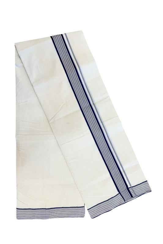 25% Discount!! KaithariKada Handloom Unakkupaav Balaramapuram - 100% Pure Cotton Off White - (Unbleached) Double Mundu/Dothi - 80X100 - 1.75 inch Navy Blue Striped Kara - 27KK5209 REA