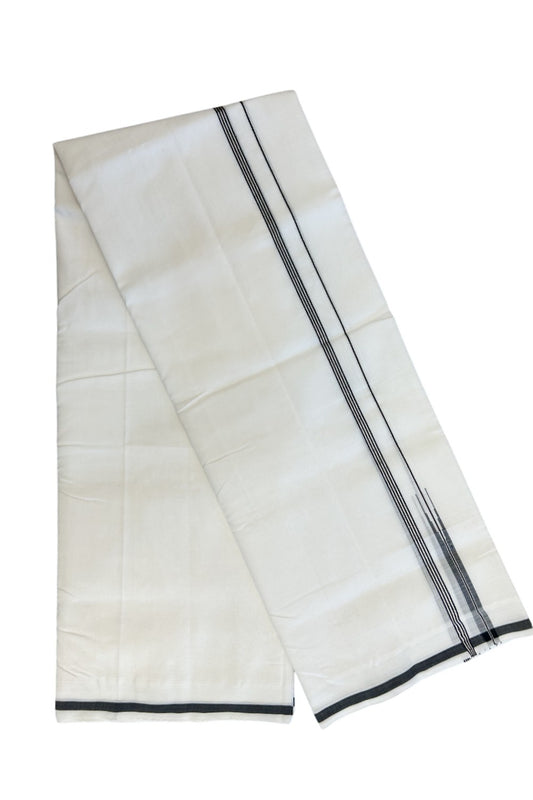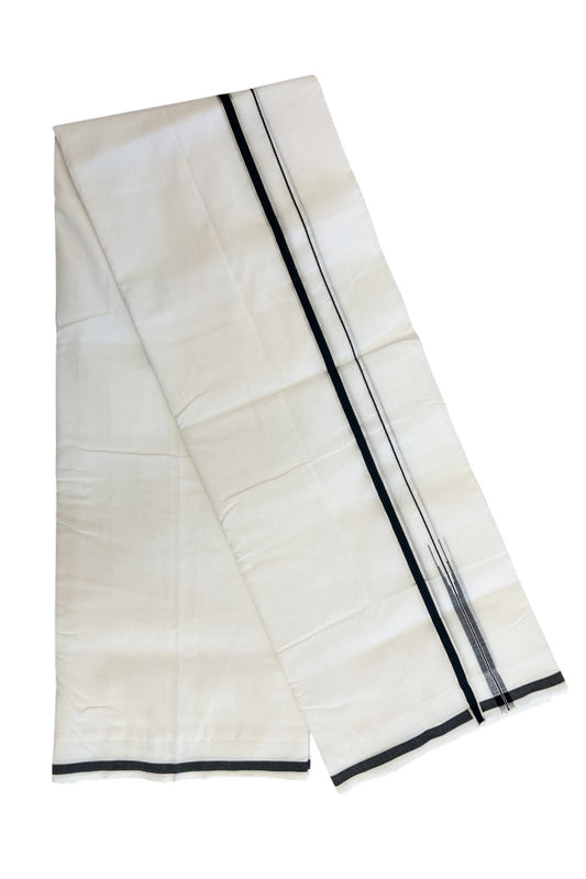 25% Discount!! NEW ULTRA PURE WHITE HANDLOOM Balaramapuram - 100% Mercerised Cotton Double Mundu/Dhoti - 120 twisted warp x 80s weft - 0.75 inch Puliyilakkara Black Striped Chutty Kara- 5KK5200REA