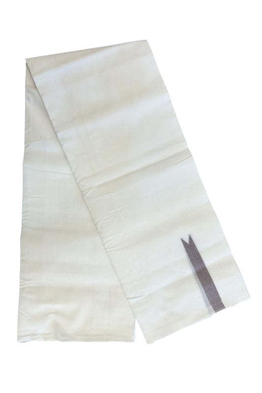 25% Discount!! New Ultra Pure White Handloom Balaramapuram - 100% Mercerised Cotton Double Mundu/Dhoti - 120 twisted warp x 80s weft - 1.5 inch Puliyilakkara Silver Kasav & Black Brown Striped Chutty Kara- 8KK5200REA