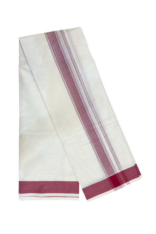 Panchakacham Dhoti - 20% DISCOUNT! KaithariKada 100% Cotton Off White - (Unbleached) - Pure Cotton -100x100 thread - NORTH INDIAN - ATTACHED GAMCHA 9X5 Dhoti Maroon Striped 1.5 inch Kara- 14KK5196PMC