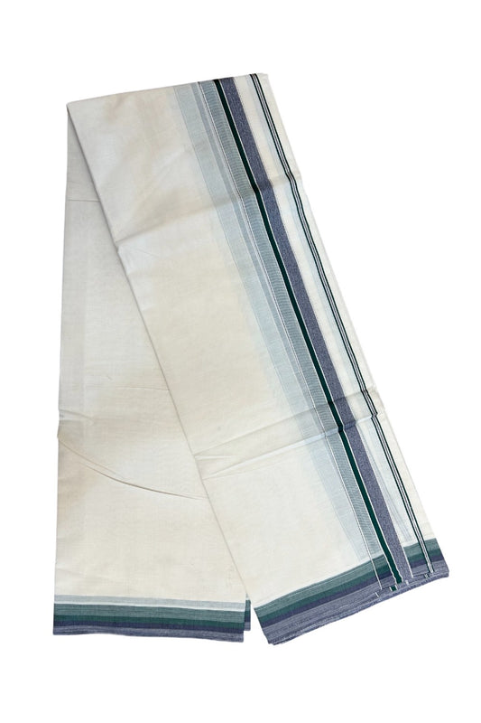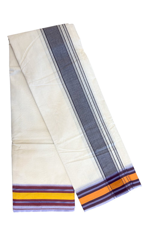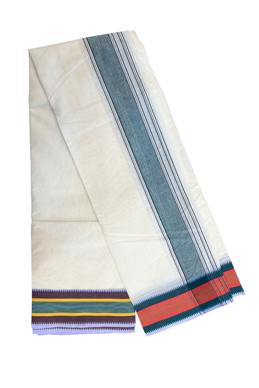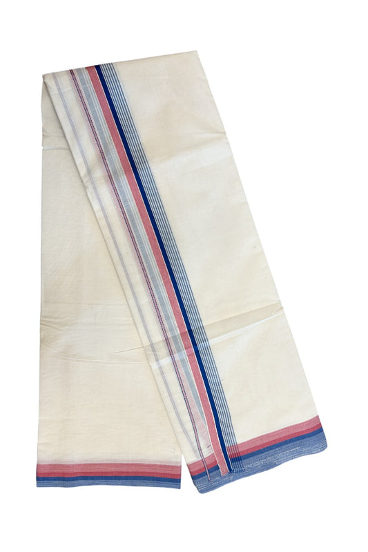20% DISCOUNT ! KaithariKada Balaramapuram 100% Cotton off white (Unbleached) Double Mundu/Dhoti - 100X80 - 1.75 inch Multi Colour kara - 2KK5193PMC