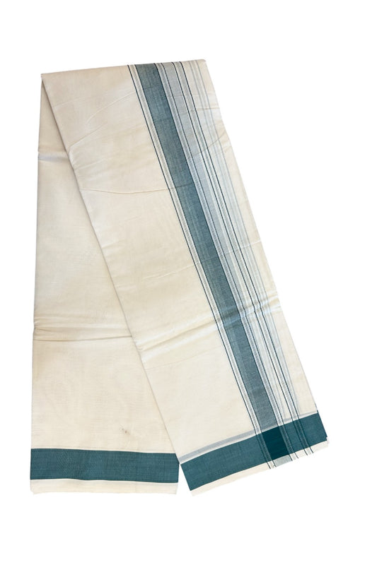 Panchakacham Dhoti - 20% Discount KaithariKada 100% Cotton Off White - (Unbleached)- Pure Cotton - 100x100 thread - NORTH INDIAN ATTACHED GAMCHA 9X5 Dhoti Dark Green STRIPED 1.75 inch kara - 1KK5196PMC