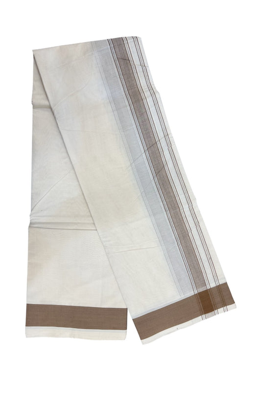 20% DISCOUNT!! KaithariKada Balaramapuram 100% Cotton PURE WHITE Double Mundu/Dhoti-100x80 - 0.5 inch Orange Brown Kasav Chutty Kara - 53KK5191CKS