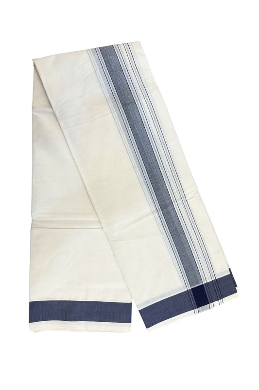 Panchakacham Dhoti - 20% DISCOUNT! KaithariKada 100% Cotton Off White - (Unbleached) - Pure Cotton -100x100 thread - NORTH INDIAN ATTACHED GAMCHA 9X5 Dhoti Navy Blue Striped 1.75 inch kara - 4KK5196PMC
