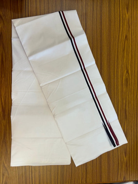 20% Discount ! Kaitharikada Balaramapuram 100% Cotton Pure White Double Rainbow Mundu/Dothi - 100x80 - 0.75 inch Navy Blue & Dusty Rose Kara 3.80 mtr (8 muzham) - 23 KK5299 THI