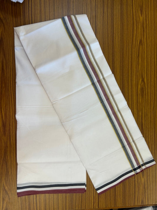 Admk Veshti - 20% Discount! KaithariKada 100% Cotton Pure white Double - (Unbleached) Mundu/Dhoti - 100X100 - 1.5 inch Gold Kasav Black White & Maroon Shaded kara - 28 KK5297 ASH