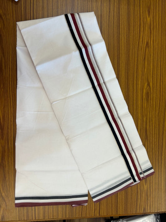 Admk Veshti - 20% Discount! KaithariKada 100% Cotton Pure white Double - (Unbleached) Mundu/Dhoti - 100X100 - 1.5 inch Black White & Maroon kara - 27 KK5297 ASH