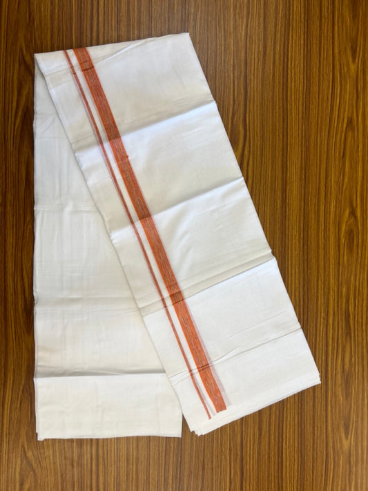 Linen Dhoti New! 20% Discount from Kaitharikada.com - Double Mundu/Dhoti 80x90 Thread Pure White - Pure Cotton + Linen - 1.75 Inch Rust Orange Shaded Kara 4 mtr (8.5 muzham) - 16 KK5299 THI