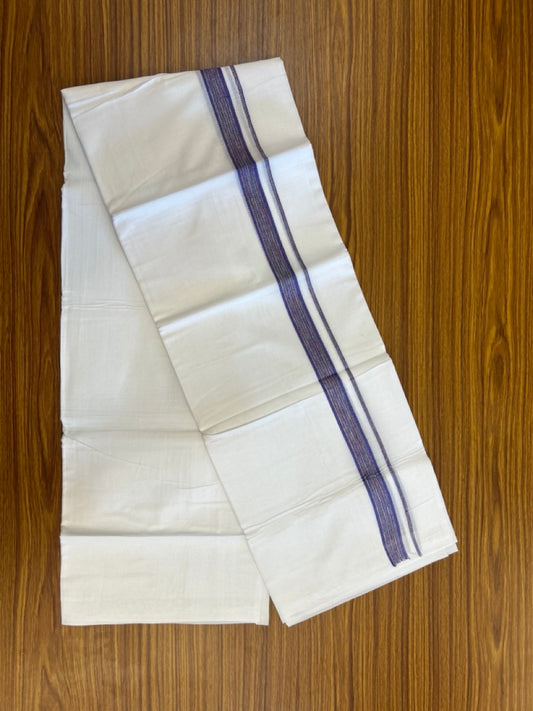 Linen Dhoti New! 20% Discount from Kaitharikada.com - Double Mundu/Dhoti 80x90 Thread Pure White - Pure Cotton + Linen - 1.75 Inch Blue & Silver Kasav Striped Kara 4 mtr (8.5 muzham) - 14 KK5299 THI