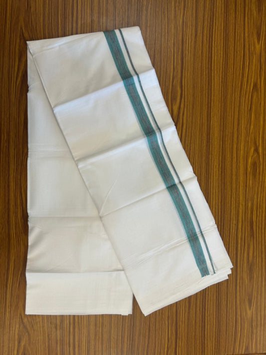 Linen Dhoti New! 20% Discount from Kaitharikada.com - Double Mundu/Dhoti 80x90 Thread Pure White - Pure Cotton + Linen - 1.75 Inch Light Green & Silver Kasav Striped Kara 4 mtr (8.5 muzham) - 13 KK5299 THI