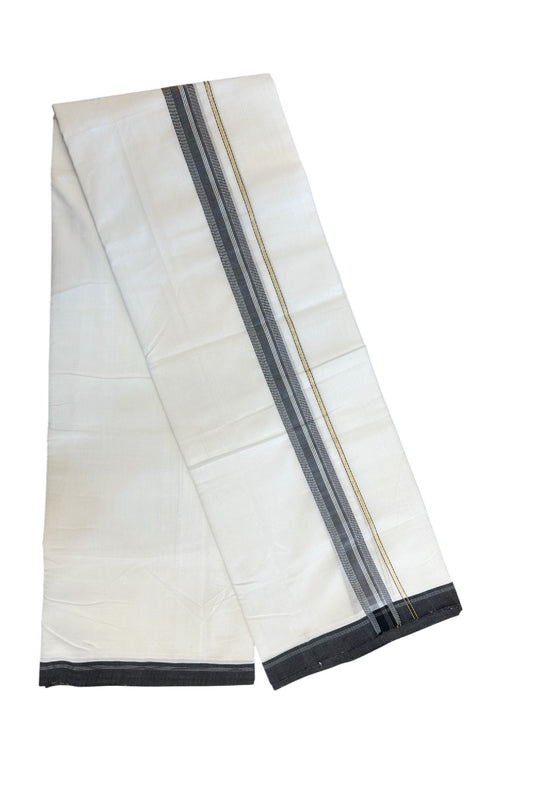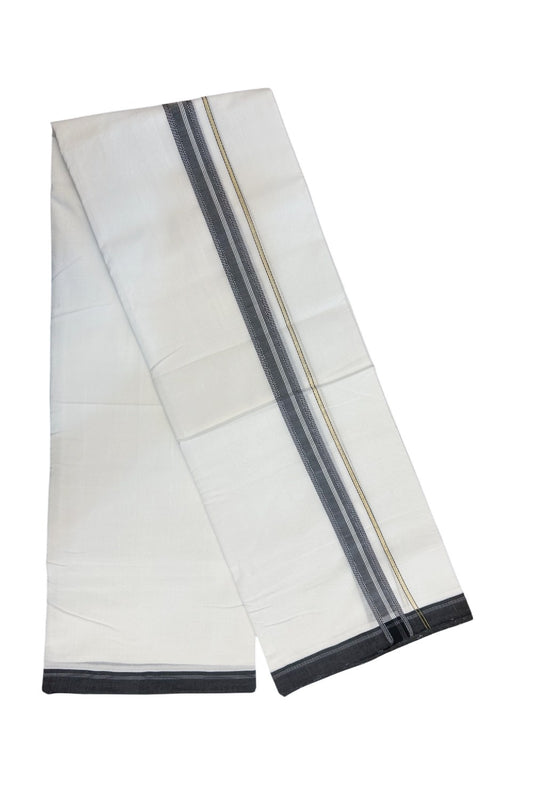 25% Discount! NEW ULTRA PURE WHITE HANDLOOM Balaramapuram - 100% Mercerised Cotton Double Mundu/Dhoti - 120(Twisted) x 80 - 3 cm Pure JERRY Black shaded muthukuri & White stripes Kara 3.80 meter (8.5 Muzham) - 40KK5167REA