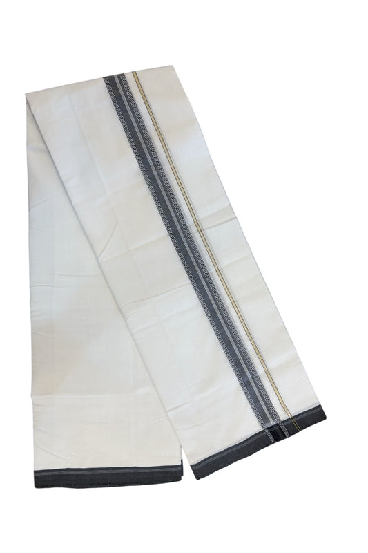 25% Discount! NEW ULTRA PURE WHITE HANDLOOM Balaramapuram - 100% Mercerised Cotton Double Mundu/Dhoti - 120(Twisted) x 80 - 1.25 inch Pure JERRY Black shaded & White stripes Kara 3.80 meter (8.5 Muzham) - 42KK5167REA