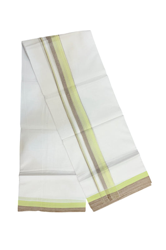 20% Discount !! KaithariKada Balaramapuram Double PURE WHITE Mundu/Dhoti- 100x80 - 1.5 inch Fluorescent Green Brown Kara Silver Striped kara - 11KK5143PMC