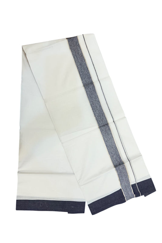 20% Discount !! KaithariKada Balaramapuram Double PURE WHITE Mundu/Dhoti- 100x80 - 1.5 inch Navy Blue Shaded Kara Silver Striped kara - 27KK5143PMC