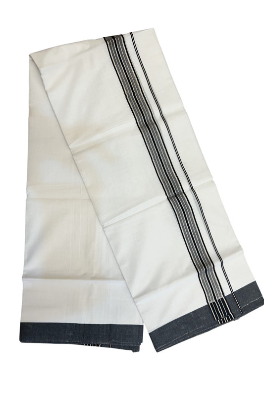 20% Discount !! KaithariKada Balaramapuram Double PURE WHITE Mundu/Dhoti- 100x80 - 1.5 inch Black Shaded Kara Silver Striped kara - 29KK5143PMC