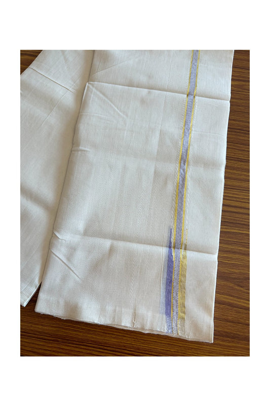 25% DISCOUNT!! KaithariKada HANDLOOM Unakkupaav Balaramapuram - 100% PURE Cotton OFF White Double - (Unbleached) Mundu/Dothi - 0.75 inch puliyilakkara Lavender & Gold Kasavu Chutty Kara- 1KK5089YAR