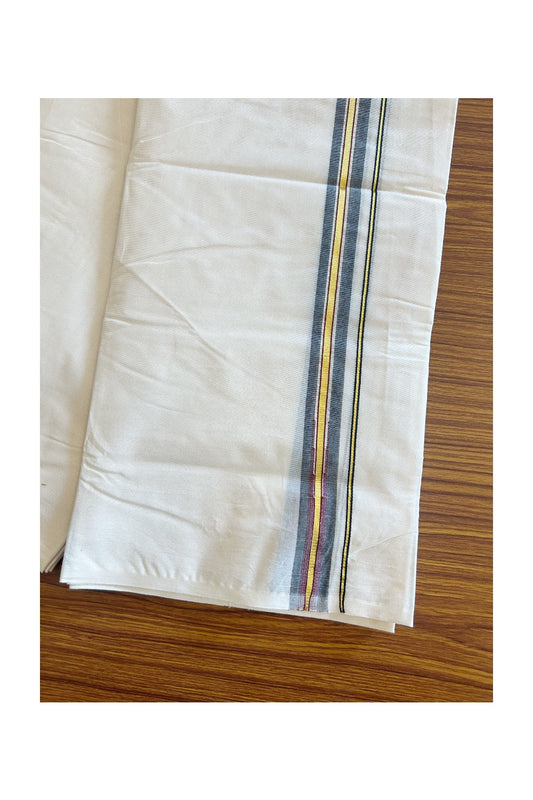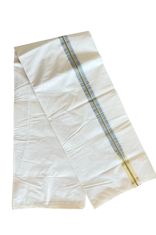 SHORT DHOTI SPECIAL! Kaitharikada.com - 26% Discount! Balaramapuram Double Off white - (Unbleached) Mundu/Dhoti - 100X100 - 1 inch Kara & 46 inches Height Puliyilakkara Chutty Gold Kasavu & Black Striped Design Kara - 2KK5090ASH