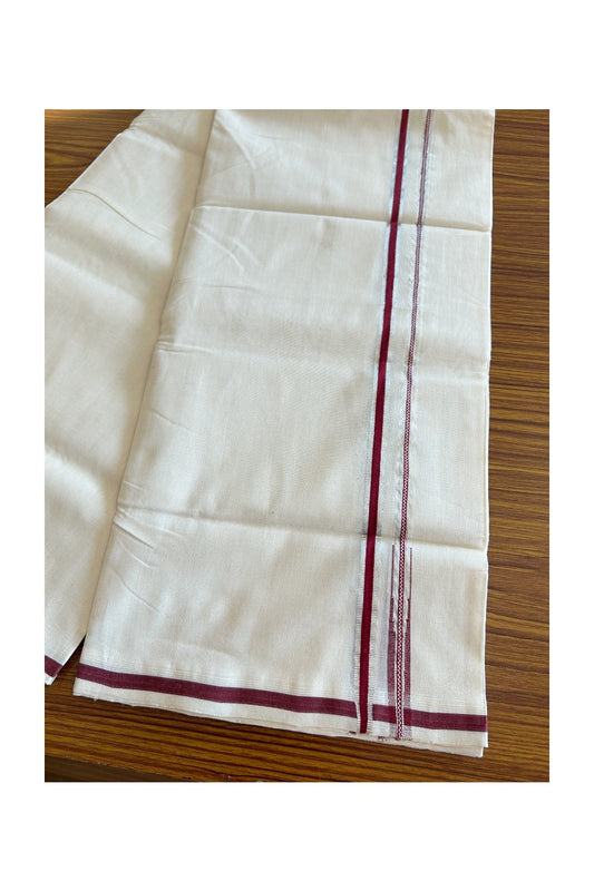 25% DISCOUNT!! KaithariKada HANDLOOM UNAKKUPAAV Balaramapuram - 100% PURE Cotton OFF White - (Unbleached) Double Mundu/Dothi - 1 cm Puliyilakkara Maroon & Silver Kasavu chutty Kara - 4KK5089YAR