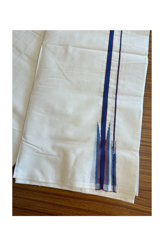 SHORT DHOTI SPECIAL! Kaitharikada.com - 19% Discount! Balaramapuram Double Off white - (Unbleached) Mundu/Dhoti - 100X100 - 1.25 inch Kara & 45 inches Height Puliyilakkara Blue & Maroon Double Chutty Kara - 5KK5088ASH
